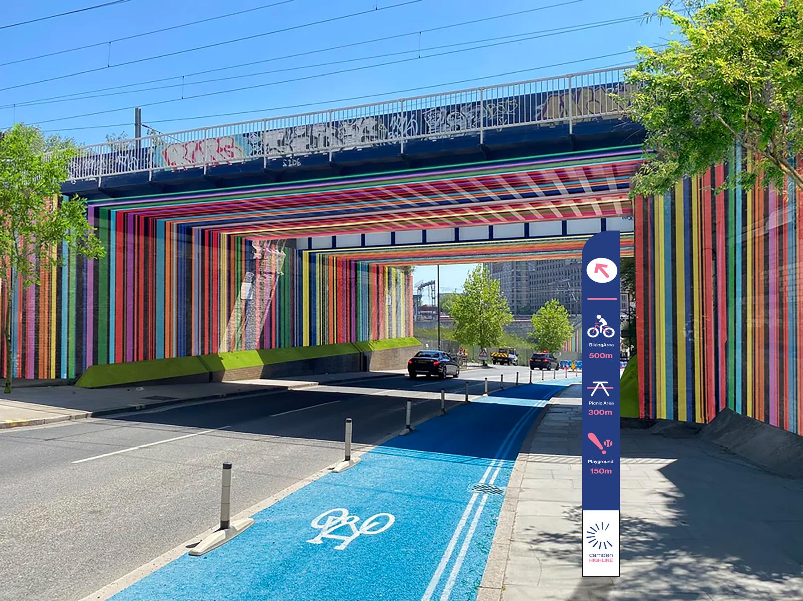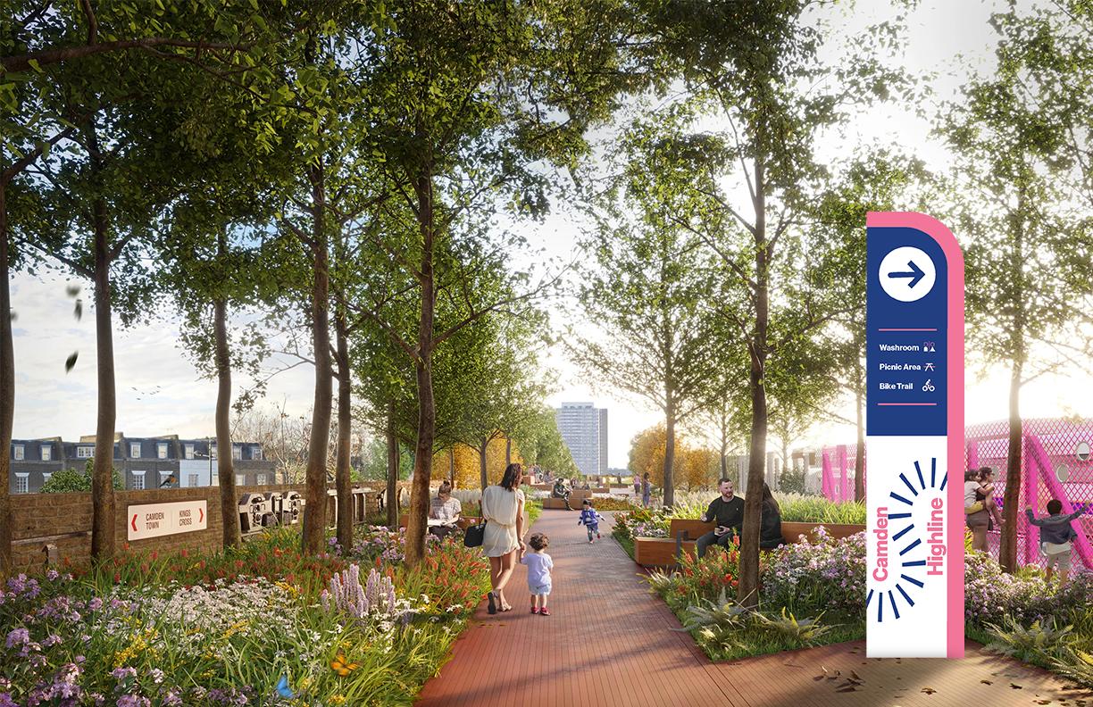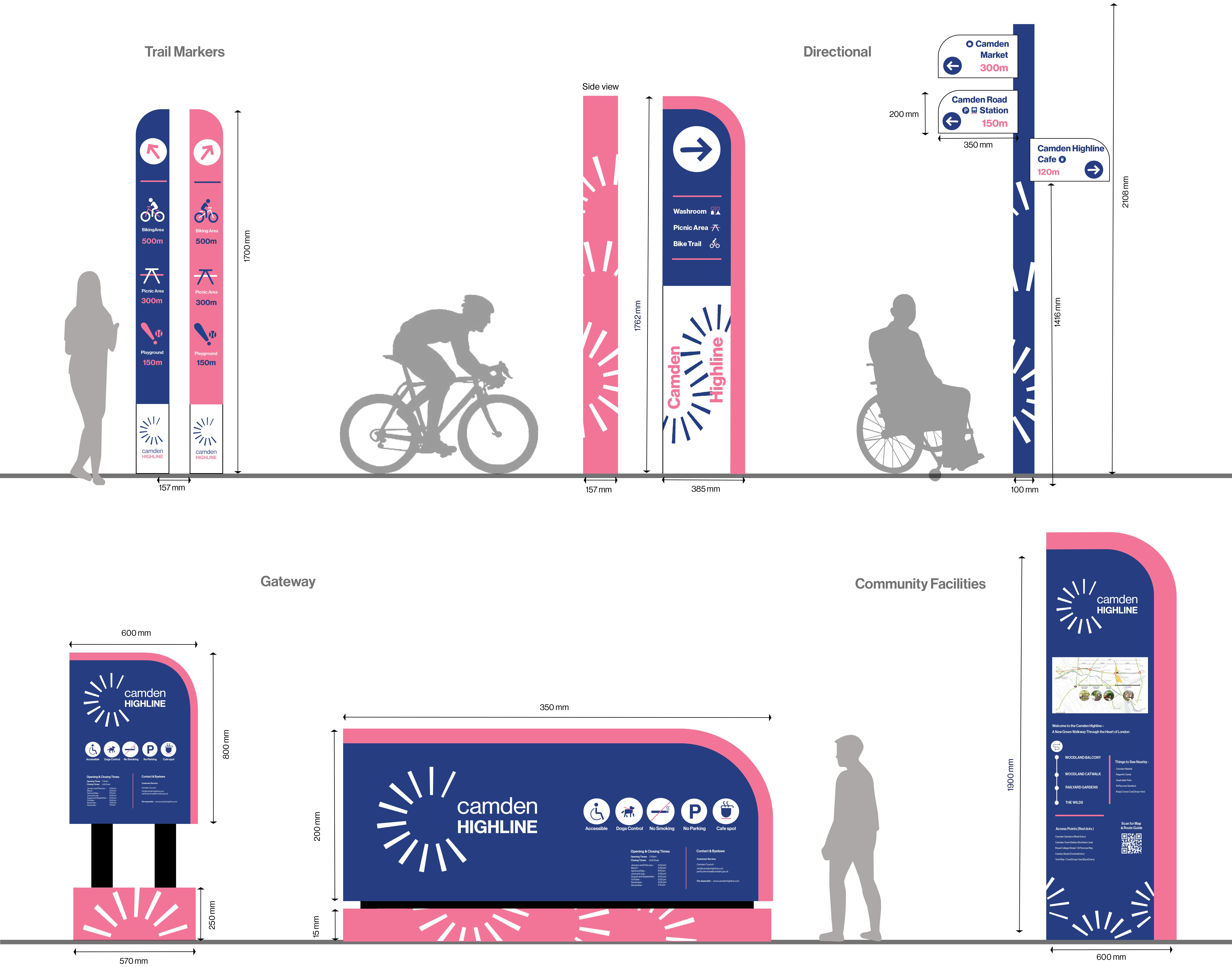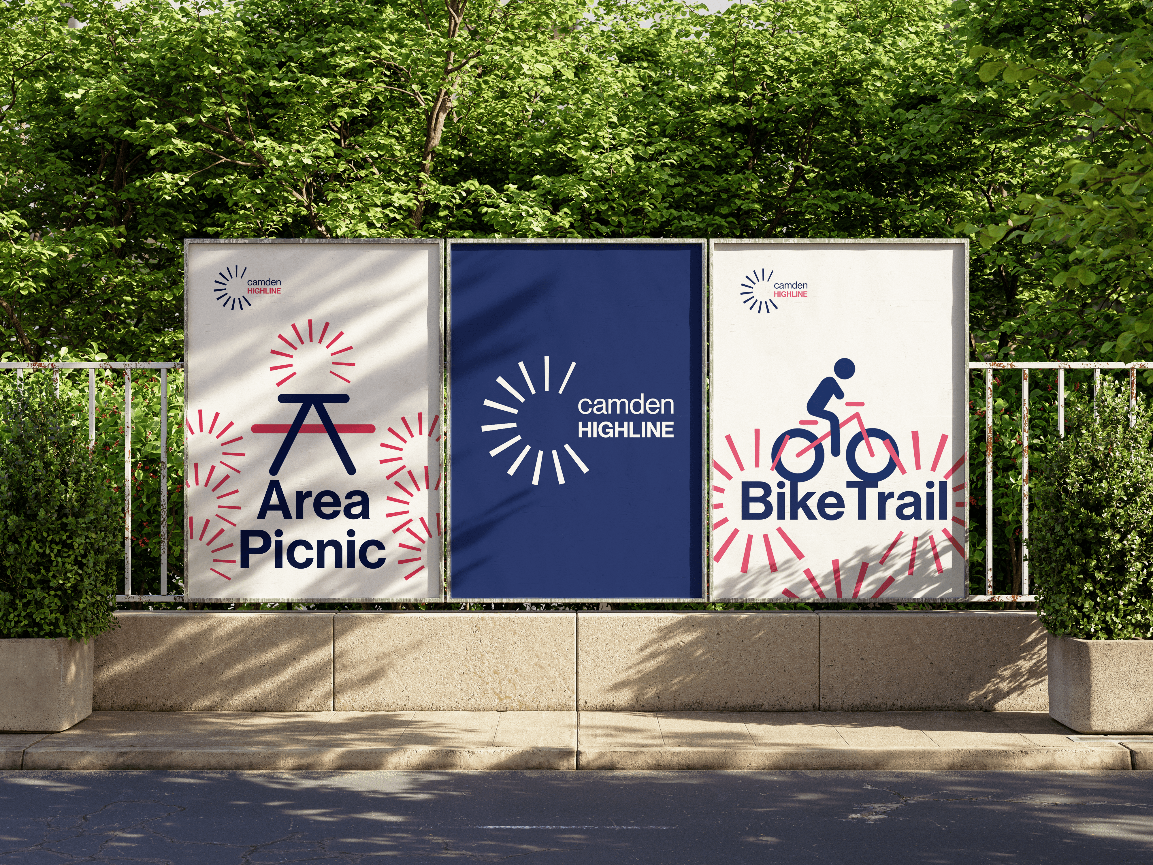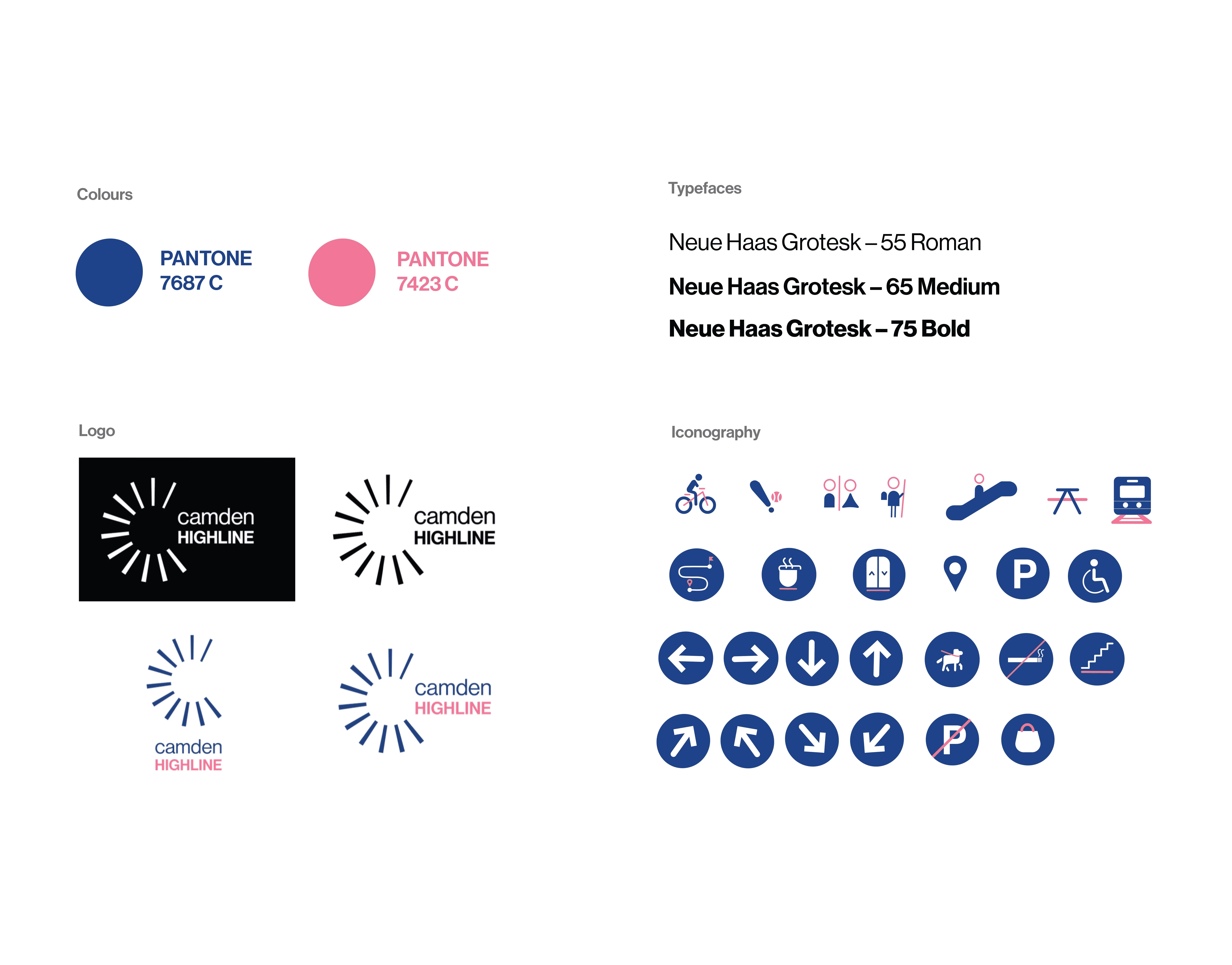 Cities are transforming and reimagining old industrial infrastructure into pedestrian-friendly spaces. Build a visual identity system for Camden Highline in London, repurposing the railway into a vibrant space while prioritizing an accessible, inclusive and distinctive approach for the urban park.